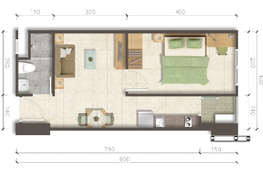 Tersedia berbagai tipe unit Borneo Bay City, mulai dari studio hingga 3 kamar tidur, dengan harga mulai Rp680 jutaan.