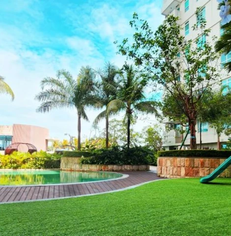 Untuk gaya hidup aktif, tersedia fasilitas kolam renang anak dan dewasa, gym, hingga jalur lari.